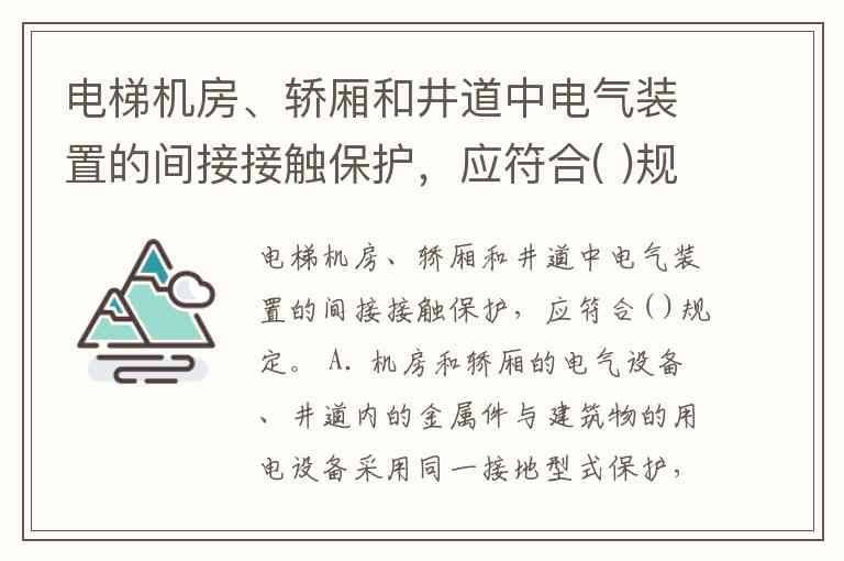 根据《电梯制造与安装安全规范》(GB 7588)等相关标准,电梯电气装置的间接接触保护应满足以下规定: