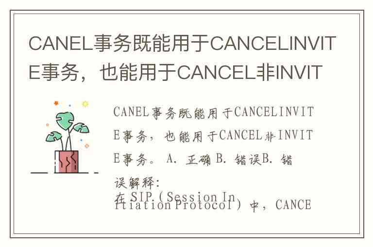 CANEL事务既能用于CANCELINVITE事务,也能用于CANCEL非INVITE事务。 A. 正确 B. 错误