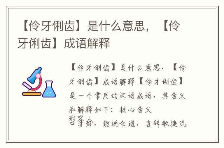 合起来即“口齿伶俐”,强调说话流畅、反应迅速。