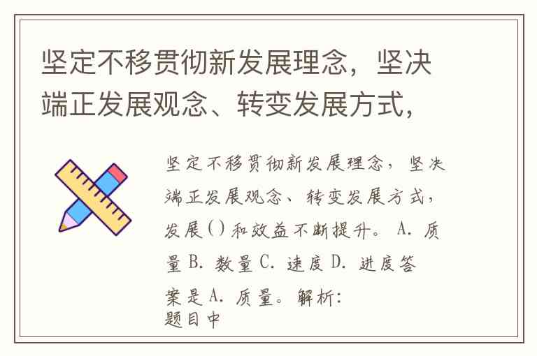 坚定不移贯彻新发展理念,坚决端正发展观念、转变发展方式,发展( )和效益不断提升。 A. 质量 B. 数量 C. 速度 D. 进度