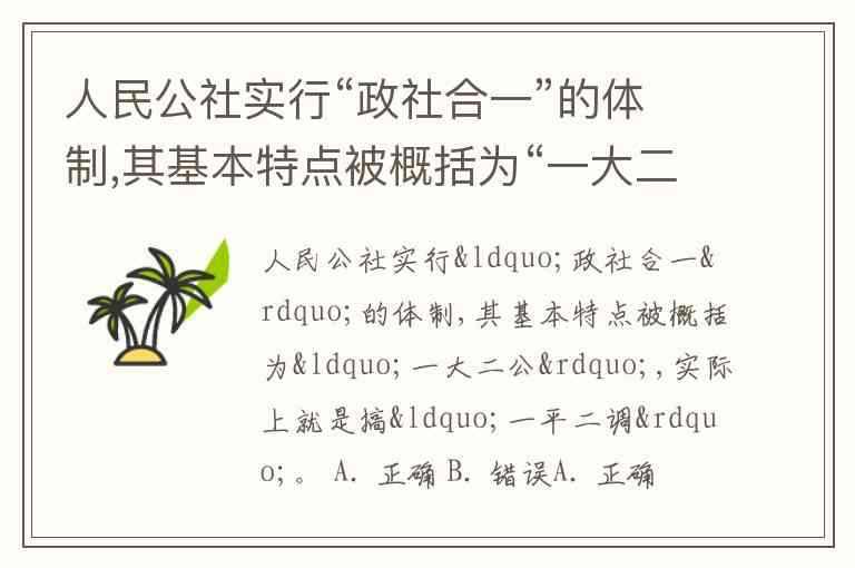 人民公社实行“政社合一”的体制,其基本特点被概括为“一大二公”,实际上就是搞“一平二调”。 A. 正确 B. 错误