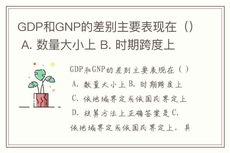 GDP和GNP的差别主要表现在() A. 数量大小上 B. 时期跨度上 C. 依地域界定或依国民界定上 D. 核算方法上
