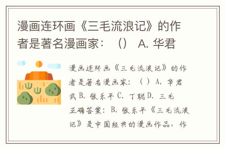 漫画连环画《三毛流浪记》的作者是著名漫画家:() A. 华君武 B. 张乐平 C. 丁聪 D. 三毛