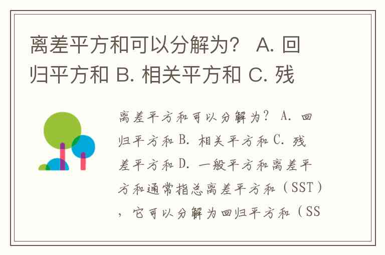 离差平方和可以分解为? A. 回归平方和 B. 相关平方和 C. 残差平方和 D. 一般平方和