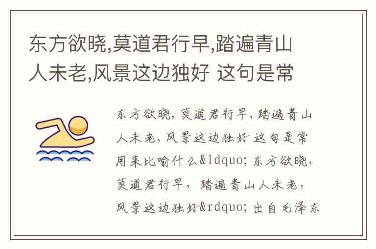 “东方欲晓,莫道君行早,踏遍青山人未老,风景这边独好”出自毛泽东的《清平乐·会昌》。这四句词常被用来比喻以下情境或精神内涵:
