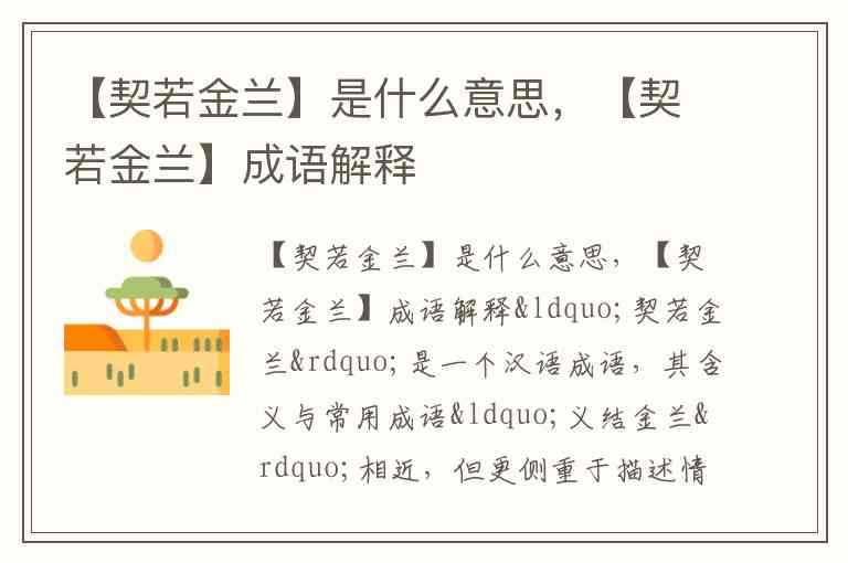 【契若金兰】是什么意思,【契若金兰】成语解释
