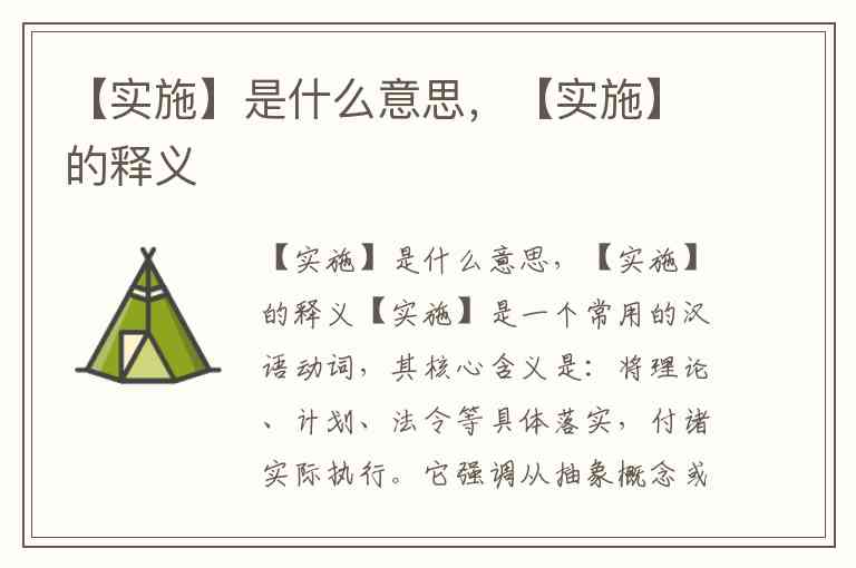 【实施】是一个常用的汉语动词,其核心含义是:将理论、计划、法令等具体落实,付诸实际执行。它强调从抽象概念或文本规定到具体行动的转变过程。