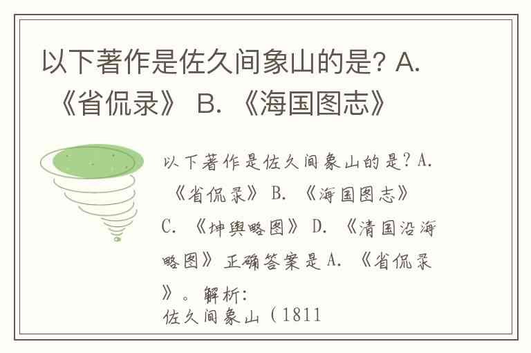 以下著作是佐久间象山的是? A. 《省侃录》 B. 《海国图志》 C. 《坤舆略图》 D. 《清国沿海略图》