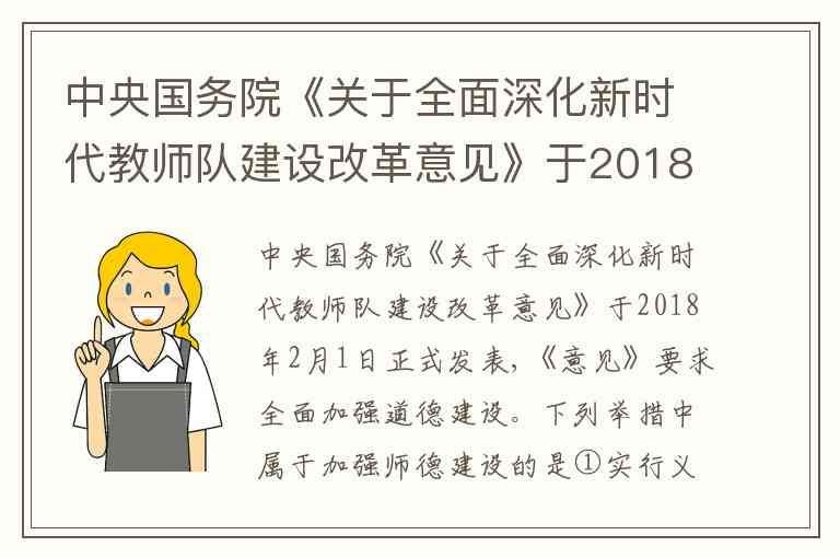 中央国务院《关于全面深化新时代教师队建设改革意见》于2018年2月1日正式发表,《意见》要求全面加强道德建设。下列举措中属于加强师德建设的是①实行义务教育教师“县管校聘”②加强教师党支部和党员队伍建设③加强理想信念教育;提高教师思想政治素质④扬商情师德,注重加强对师德师风的监察教育;