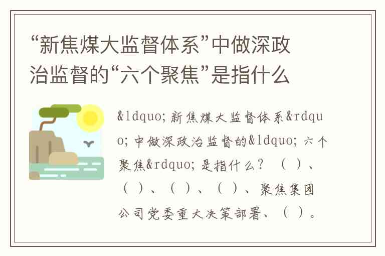 在“新焦煤大监督体系”中,做深政治监督的“六个聚焦”是指: