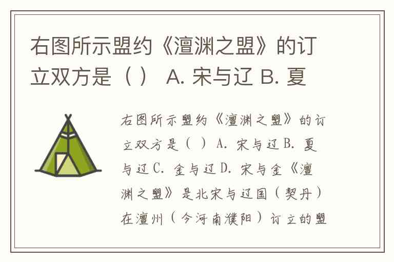 右图所示盟约《澶渊之盟》的订立双方是( ) A. 宋与辽 B. 夏与辽 C. 金与辽 D. 宋与金