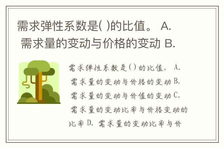 需求弹性系数是( )的比值。 A. 需求量的变动与价格的变动 B. 需求量的变动与价值的变动 C. 需求量的变动比率与价格变动的比率 D. 需求量的变动比率与价值变动的比率