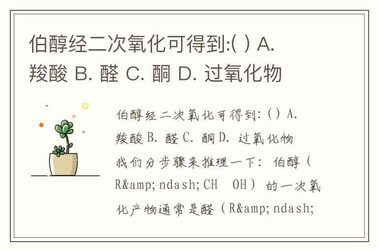 伯醇经二次氧化可得到:( ) A. 羧酸 B. 醛 C. 酮 D. 过氧化物