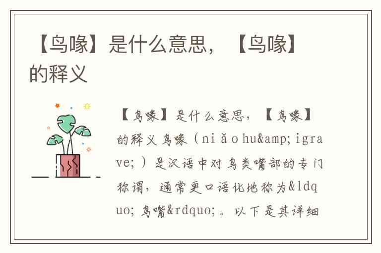 “鸟喙”是生物学与文学中的常见概念,既是鸟类生存的关键器官,也是自然演化与文化隐喻的重要载体。其形态与功能的多样性,生动体现了生物对环境的适应性进化。