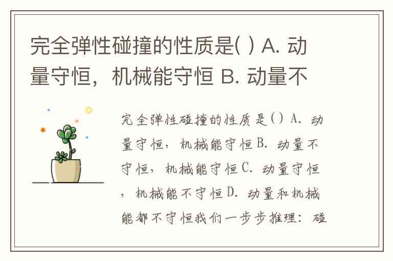 完全弹性碰撞的性质是( ) A. 动量守恒,机械能守恒 B. 动量不守恒,机械能守恒 C. 动量守恒,机械能不守恒 D. 动量和机械能都不守恒