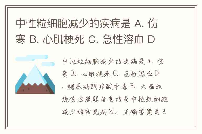 中性粒细胞减少的疾病是 A. 伤寒 B. 心肌梗死 C. 急性溶血 D. 糖尿病酮症酸中毒 E. 大面积烧伤