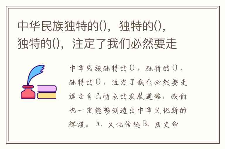 中华民族独特的(),独特的(),独特的(),注定了我们必然要走适合自己特点的发展道路,我们也一定能够创造出中华义化新的辉煌。 A. 义化传统 B. 历史命运 C. 基本国情