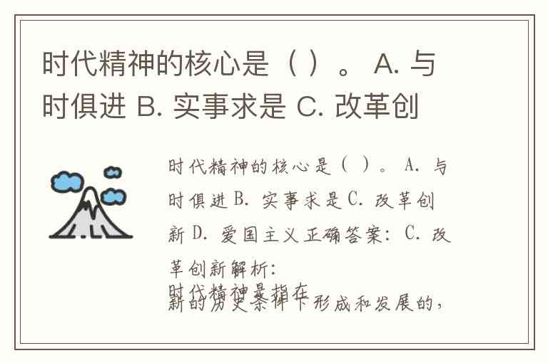 时代精神的核心是( )。 A. 与时俱进 B. 实事求是 C. 改革创新 D. 爱国主义