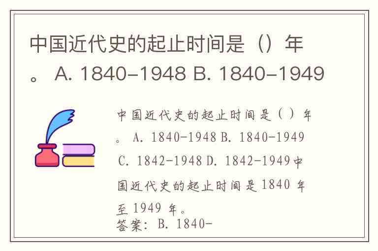 中国近代史的起止时间是()年。 A. 1840-1948 B. 1840-1949 C. 1842-1948 D. 1842-1949