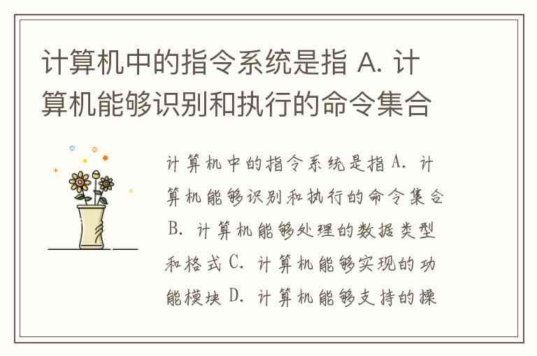 计算机中的指令系统是指 A. 计算机能够识别和执行的命令集合 B. 计算机能够处理的数据类型和格式 C. 计算机能够实现的功能模块 D. 计算机能够支持的操作系统和应用软件