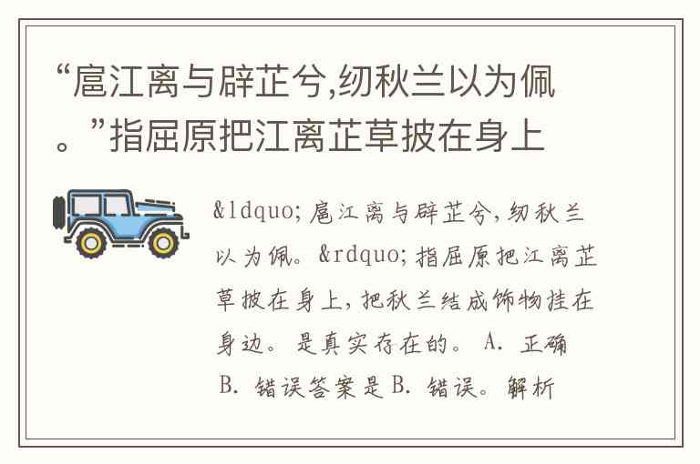 “扈江离与辟芷兮,纫秋兰以为佩。”指屈原把江离芷草披在身上,把秋兰结成饰物挂在身边。是真实存在的。 A. 正确 B. 错误