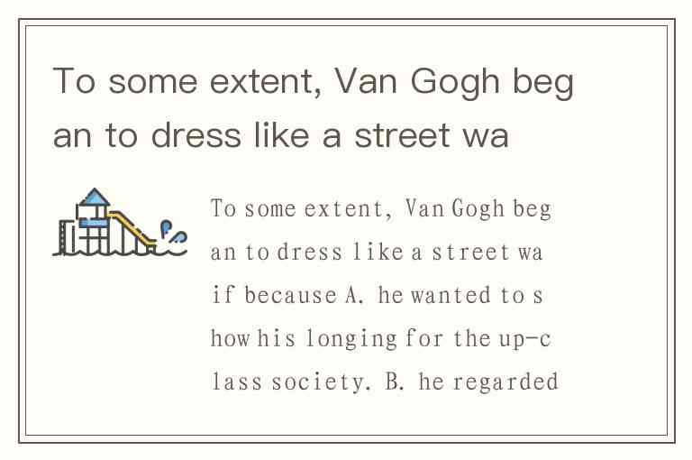 To some extent, Van Gogh began to dress like a street waif because A. he wanted to show his longing for the up-class society. B. he regarded the polite society as hypocritical. C. the polite society was willing to take him as a member. D. he often lived a miserable life.