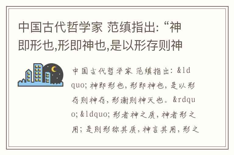 范缜的论述核心在于强调“形神相即”“形质神用”,认为精神(神)是依赖于形体(形)而存在的,形体是精神的物质基础,精神是形体的功能或作用,二者不可分离。这明显是唯物主义观点,尤其符合古代朴素唯物主义的特征。