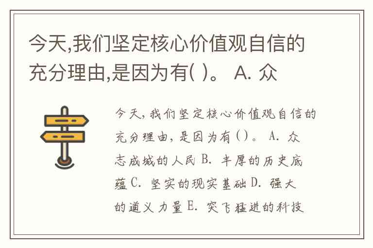 今天,我们坚定核心价值观自信的充分理由,是因为有( )。 A. 众志成城的人民 B. 丰厚的历史底蕴 C. 坚实的现实基础 D. 强大的道义力量 E. 突飞猛进的科技进步