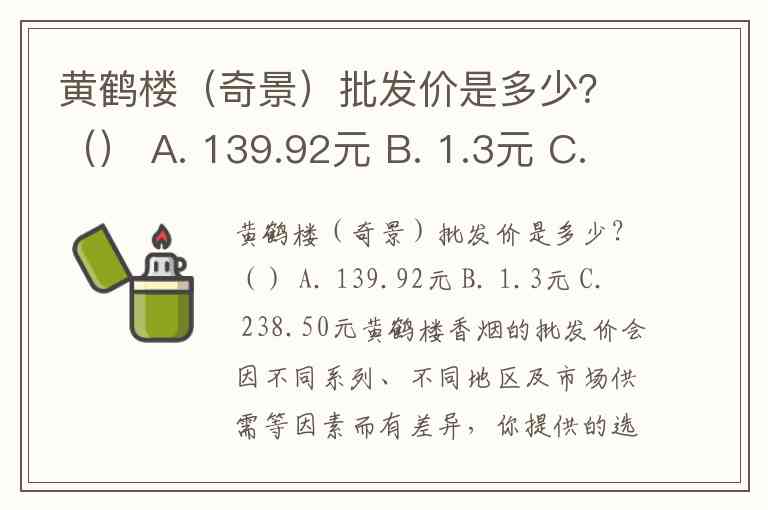 黄鹤楼(奇景)批发价是多少?() A. 139.92元 B. 1.3元 C. 238.50元