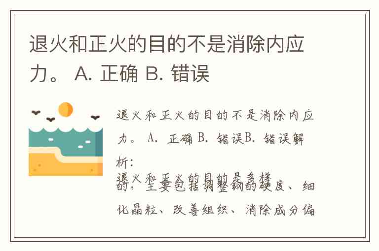 因此,“退火和正火的目的不是消除内应力”这一说法是不准确的,所以本题应选 B. 错误。