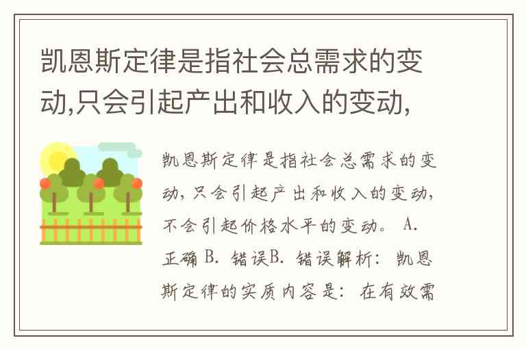 题干将凯恩斯定律绝对化为“不会引起价格水平的变动”,忽略了其适用的前提条件和经济达到充分就业后的变化,因此表述是不准确的,属于错误选项。