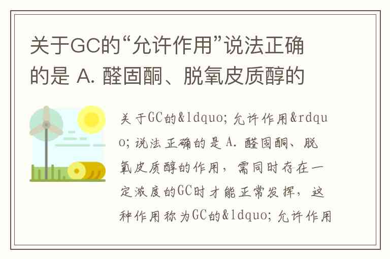 糖皮质激素(GC)的“允许作用”是指其本身不直接引发某些生理反应,但能为其他激素发挥作用提供必要的支持条件。