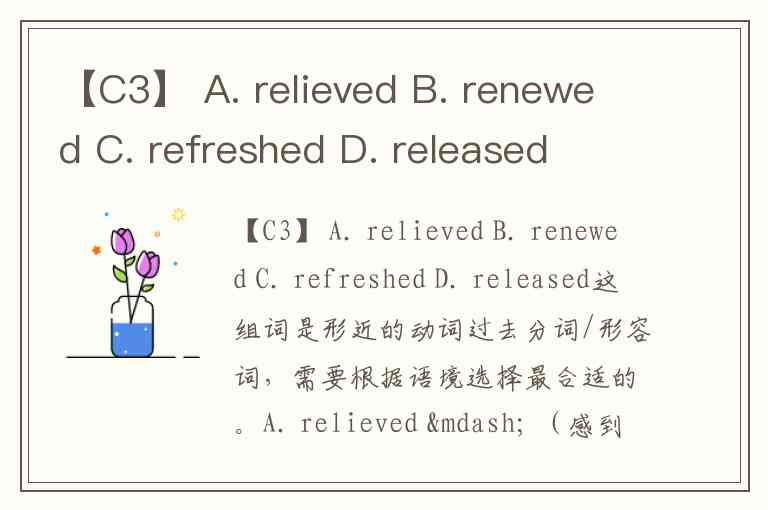 【C3】 A. relieved B. renewed C. refreshed D. released
