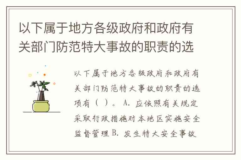 以下属于地方各级政府和政府有关部门防范特大事故的职责的选项有( )。 A. 应依照有关规定采取行政措施对本地区实施安全监督管理 B. 发生特大安全事故后迅速和妥善处理 C. 制定本地区特大安全事故应急