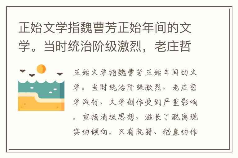正始文学并不局限于曹芳正始年间(240—249),一般文学史所指的“正始文学”常延伸至曹魏后期,甚至到司马氏代魏前夕,涵盖了竹林七贤主要活动的年代。