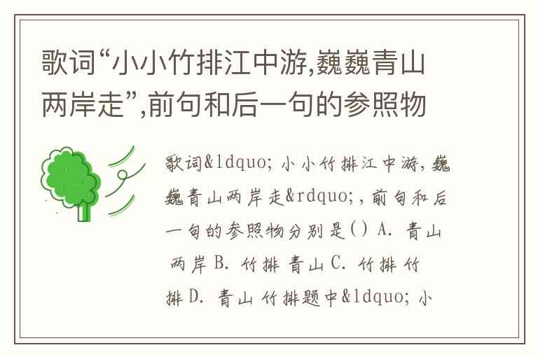 歌词“小小竹排江中游,巍巍青山两岸走”,前句和后一句的参照物分别是( ) A. 青山 两岸 B. 竹排 青山 C. 竹排 竹排 D. 青山 竹排