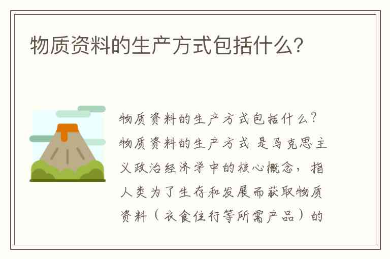 物质资料的生产方式 是马克思主义政治经济学中的核心概念,指人类为了生存和发展而获取物质资料(衣食住行等所需产品)的社会方式。它包括两个不可分割的方面: