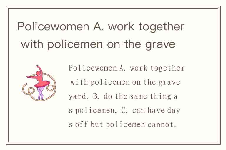 Policewomen A. work together with policemen on the graveyard. B. do the same thing as policemen. C. can have days off but policemen cannot. D. don’t have to work double-backs.
