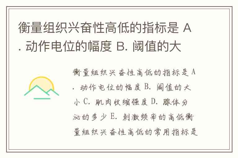 衡量组织兴奋性高低的指标是 A. 动作电位的幅度 B. 阈值的大小 C. 肌肉收缩强度 D. 腺体分泌的多少 E. 刺激频率的高低