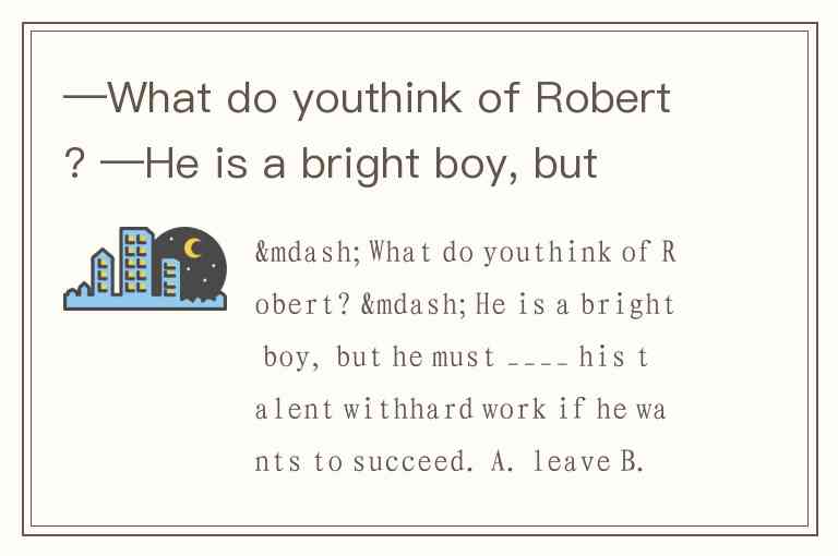 —What do youthink of Robert? —He is a bright boy, but he must ____ his talent withhard work if he wants to succeed. A. leave B. match C. combine D. show