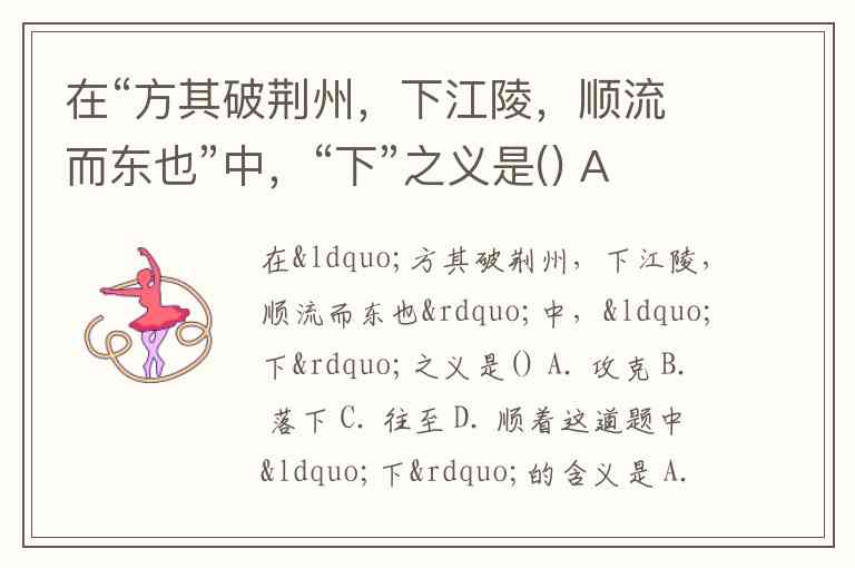 在“方其破荆州,下江陵,顺流而东也”中,“下”之义是() A. 攻克 B. 落下 C. 往至 D. 顺着