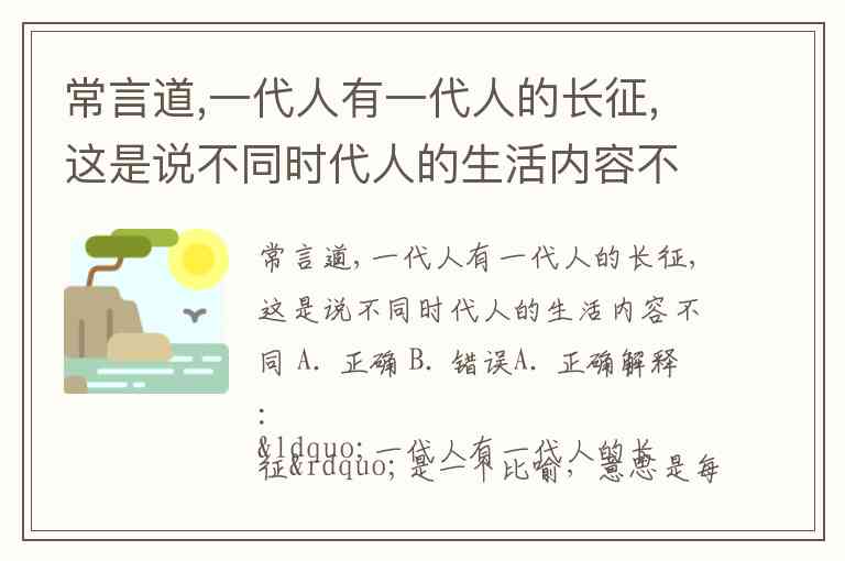 常言道,一代人有一代人的长征,这是说不同时代人的生活内容不同 A. 正确 B. 错误