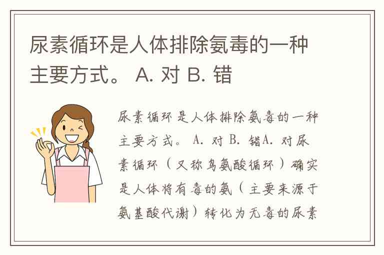 尿素循环是人体排除氨毒的一种主要方式。 A. 对 B. 错