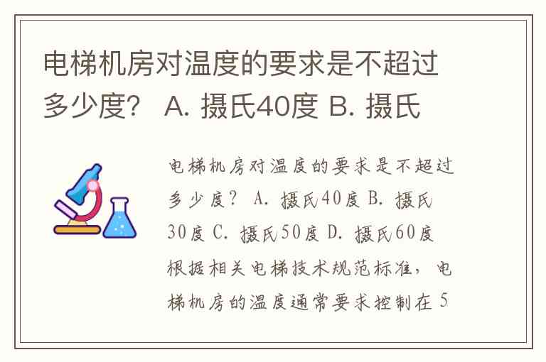 电梯机房对温度的要求是不超过多少度? A. 摄氏40度 B. 摄氏30度 C. 摄氏50度 D. 摄氏60度