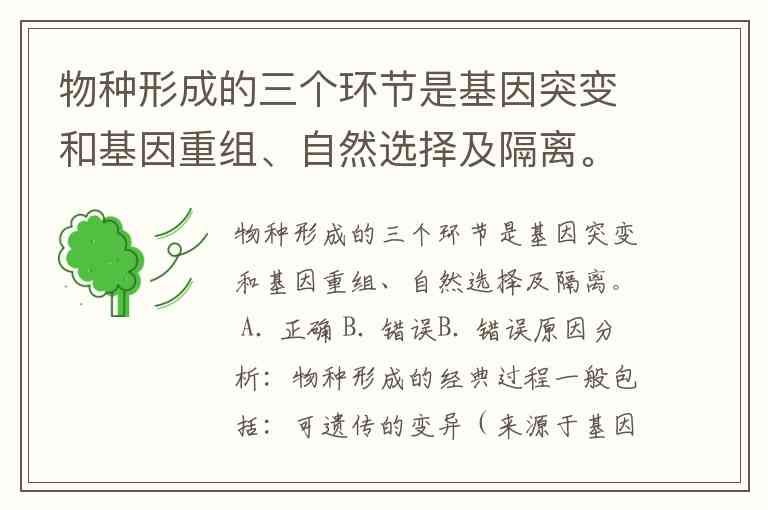 题目表述中“物种形成的三个环节是基因突变和基因重组、自然选择及隔离”存在逻辑重叠与表述不准确的问题: