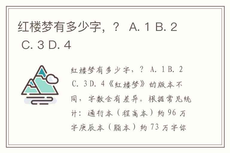 红楼梦有多少字,? A. 1 B. 2 C. 3 D. 4