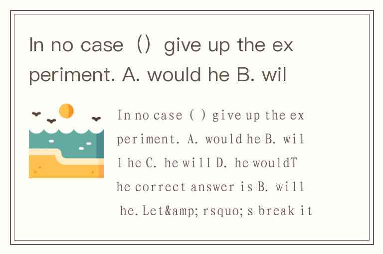 In no case()give up the experiment. A. would he B. will he C. he will D. he would
