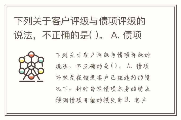 A. 债项评级是在假设客户已经违约的情况下,针对每笔债项本身的特点预测债项可能的损失率