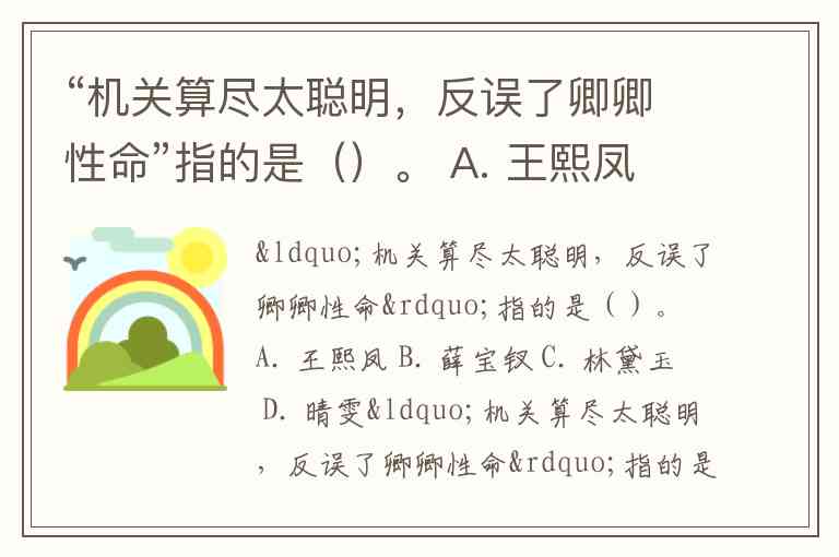 “机关算尽太聪明,反误了卿卿性命”指的是()。 A. 王熙凤 B. 薛宝钗 C. 林黛玉 D. 晴雯