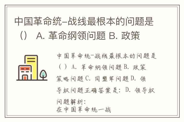 中国革命统-战线最根本的问题是() A. 革命纲领问题 B. 政策策略问题 C. 同盟军问题 D. 领导权问题